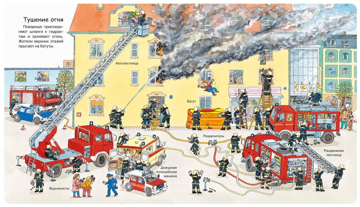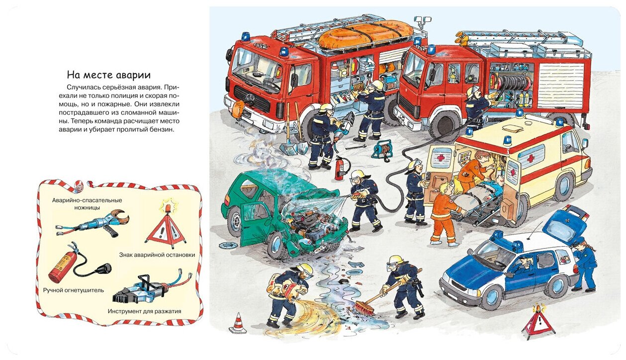 ситуации, разнообразные виды пожарной техники и снаряжения. Тщательно