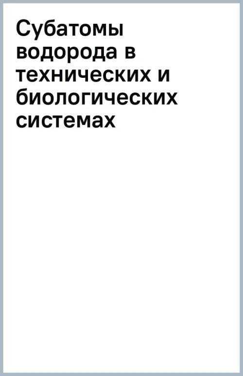 Субатомы водорода в технических и биологических системах (Неволин Владимр Кириллович); Техносфера, 2018