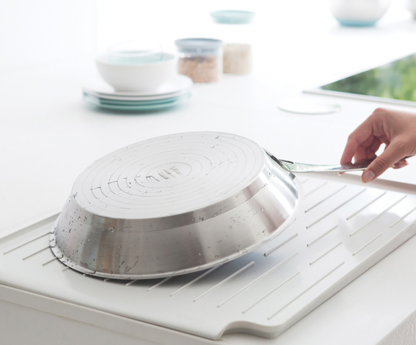 Вместительная – подходит для сушки тарелок, мисок, бокалов, столовых приборов и т.п. Всегда сухая столешница – вода с посуды стекает из поддона непосредственно в мойку.