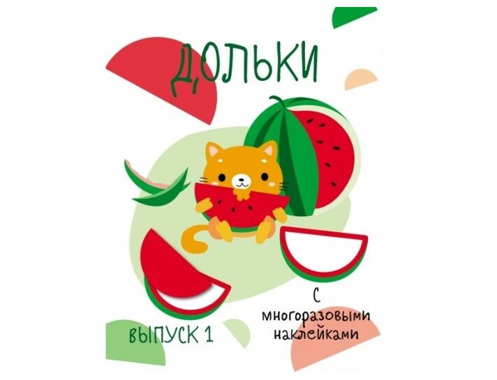 В этой книге 80 наклеек - разноцветных долек. Малыш должен дополнить с их помощью картинки. Это очень просто: покажите ему, что наклейку нужно подобрать под цвет контура. Если приклеить дольку ровно с первой попытки не получилось - не беда, ведь наши наклейки многоразовые.