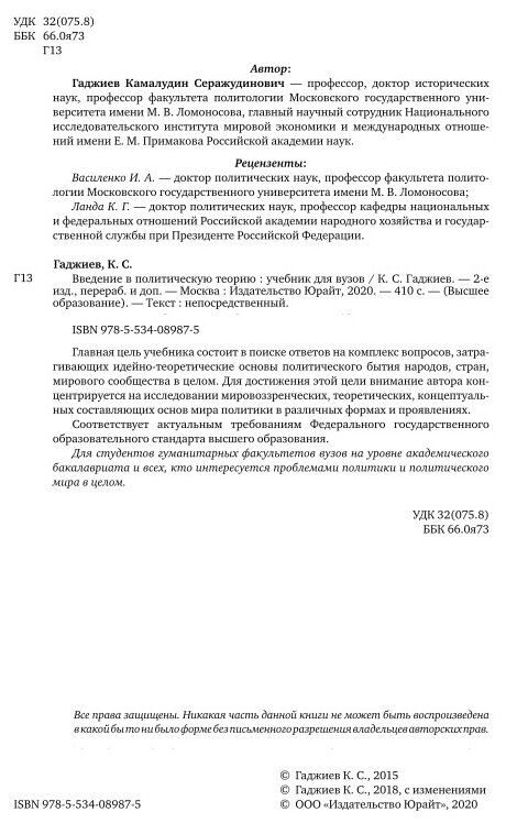 Введение в политическую теорию. Учебник для академического бакалавриата (Камалудин Серажудинович Гаджиев); ЮРАЙТ, 2018