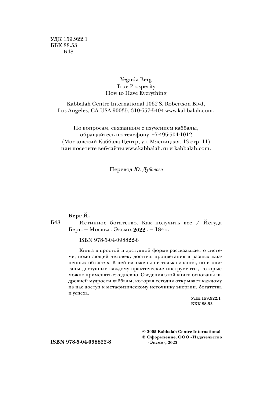 Истинное богатство. Как получить все (Йегуда Берг); Эксмо, 2005