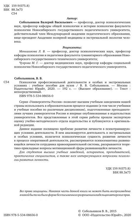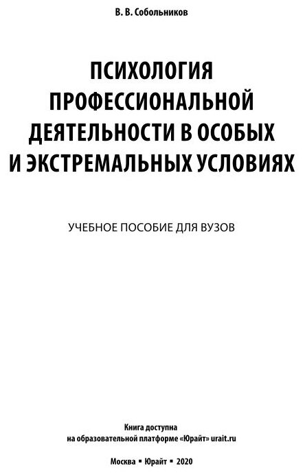 Психология профессиональной деятельности в особых и экстремальных условиях. Учебное пособие (Валерий Васильевич Собольников); ЮРАЙТ, 2019
