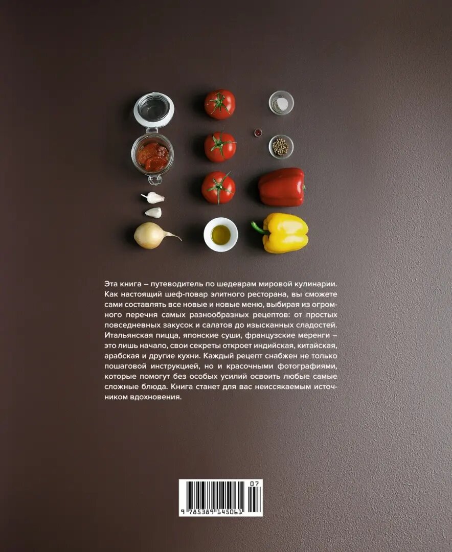 В это необычное издание вошли лучшие рецепты со всего света – итальянские, французские, индийские, китайские, арабские, японские, английские... Самые удачные, вкусные, легкие в исполнении, отточенные многовековой традицией и всегда актуальные блюда, ставшие международными, собраны здесь под одной обложкой. Рецепты представлены в форме пошаговых инструкций с фотографиями, иллюстрирующими каждый этап приготовления таким образом, что самое изысканное блюдо сразу становится простым и доступным. Вы можете использовать и привычные, проверенные временем приемы, и самые современные технологии, которые помогут вам реализовать любые кулинарные фантазии – от легкого завтрака до украшения романтического вечера. Выбор за вами.