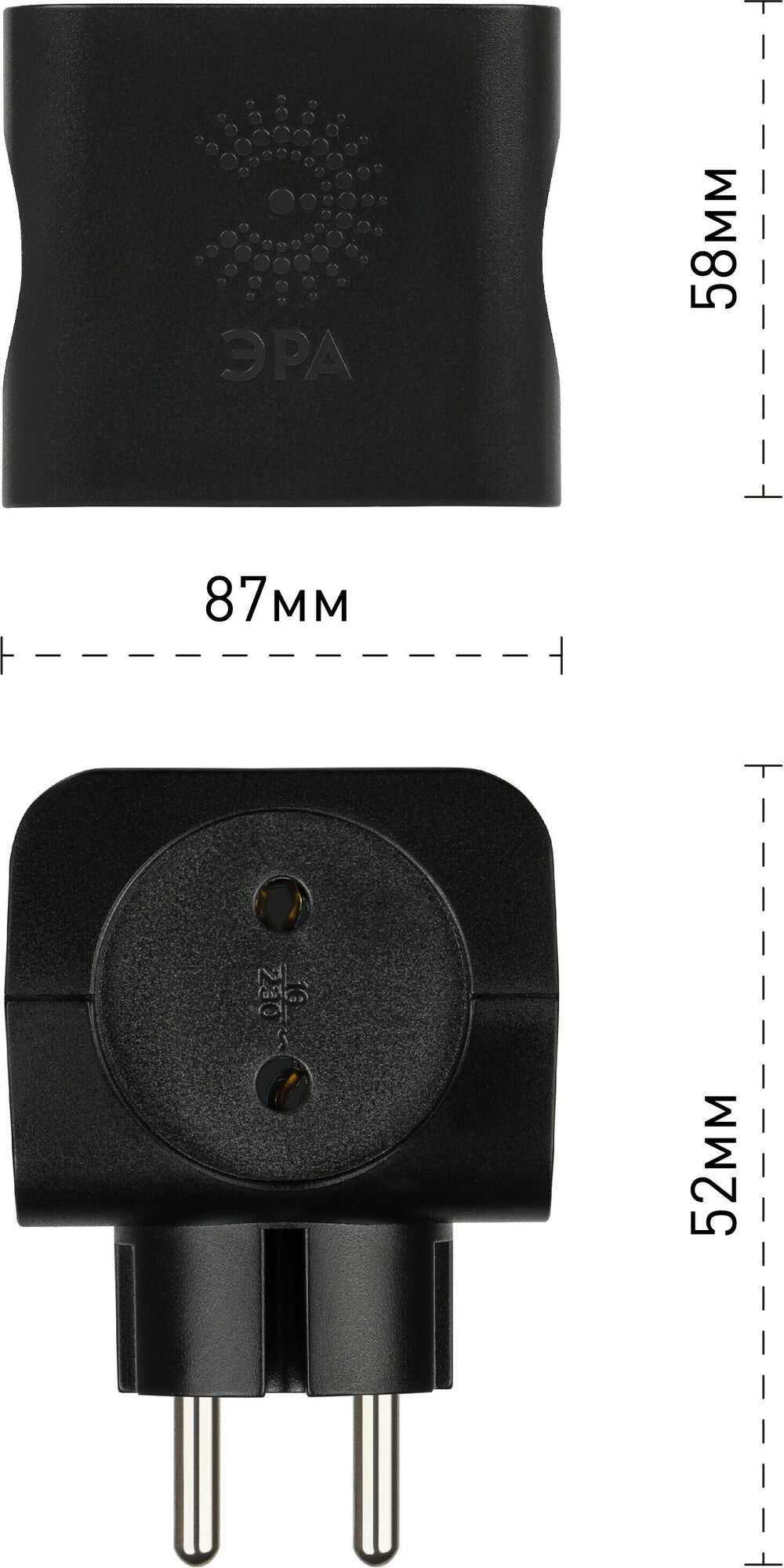 - Тройник ЭРА (разветвитель) с гнездами USB для зарядки устройств SP-3e-USB