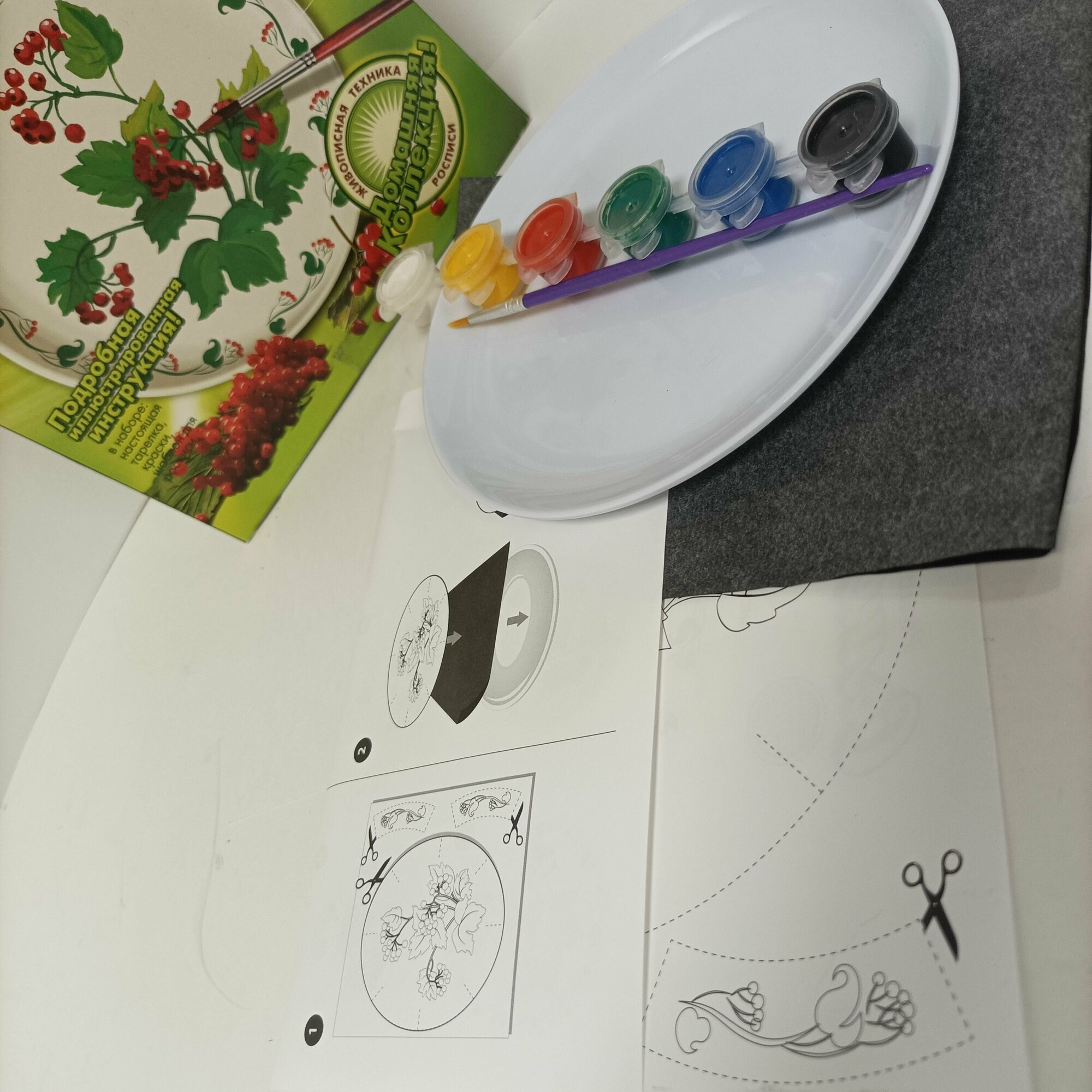 | Состав набора | пластиковая тарелка акриловые краски кисть контурная паста пластиковый крючок для закрепления тарелки шаблон для росписи |