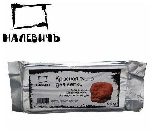 Самоотвердевающая глина Малевичъ естественного красно-коричневого цвета имеет приятную на ощупь мягкую нелипкую текстуру, благодаря чему прекрасно подходит для детского творчества. Поделки из глины не требуют обжига, самостоятельно застывая до твердого состояния в течение суток. Самозатвердевающая глина Малевичъ – современный аналог глины, лишенный ее природных недостатков. Нетоксична, легко мнется, не липнет к волосам и одежде, имеет естественный красно-коричневый цвет. Готовые изделия не требуют обжига для прочности, самостоятельно застывая в течение суток. После затвердевания поделки можно декорировать любыми способами. Вскрытую пачку глины необходимо хранить герметично упакованной, предварительно смочив водой.