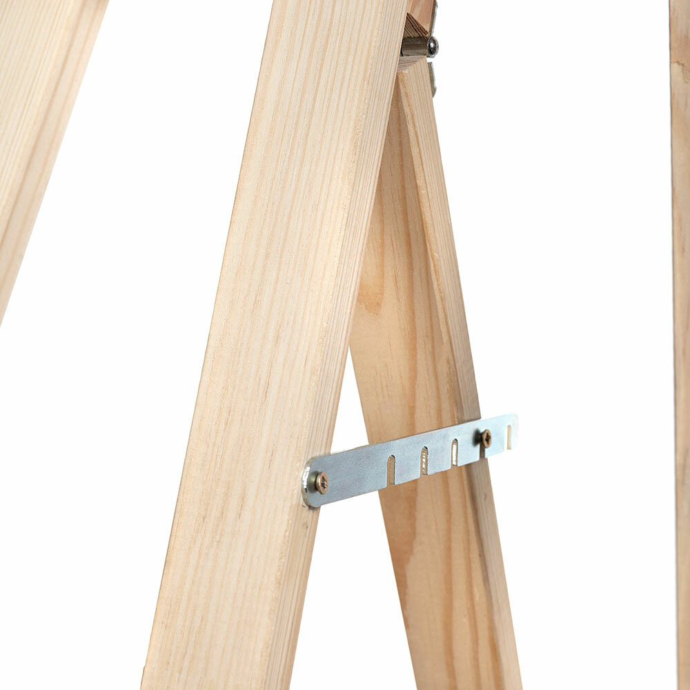 Мольберт Лира классической конструкции из натурального дерева. Угол наклона опорной ноги можно изменять, высота полки и фиксатора холста также регулируется. Оснащен дополнительной широкой полкой для инструментов с отверстиями для стаканов с водой или кистей (стаканы входят в комплект). Вторая полка также позволяет работать с двумя холстами одновременно (например при создании копий). Бюджетный вариант мольберта с улучшенной функциональностью. Высота от 150 до 170 см, ширина 55 см, глубина от 20 до 120 см. Вес 5,1 кг. Ширина полки 55 см, глубина полки 3,5 см. Глубина дополнительной полки 11,5 см. Максимальная высота холста 120 см.