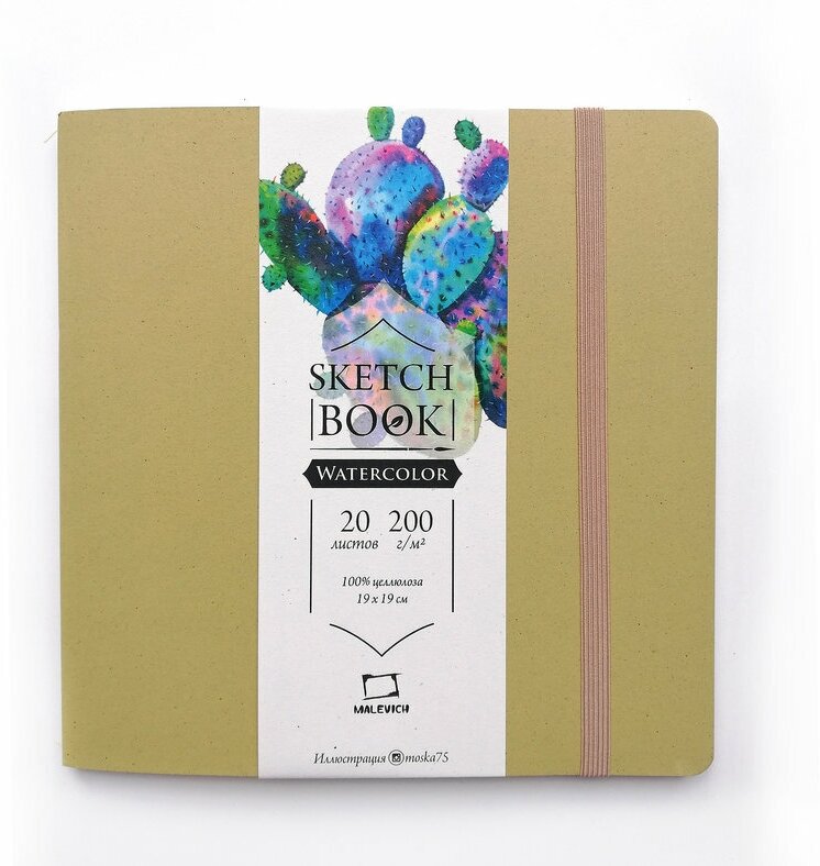 Эта серия скетчбуков сделана специально для тех, кто не хочет тратить много денег на бумагу, эта самый бюджетный акварельный скетчбук на рынке. Внутренний блок - 20 листов 19х19 см из акварельной бумаги Waterfall, мелкое зерно, плотностью 200 г/м2 прошитых по торцу. Бумага обеспечивает равномерную акварельную заливку и контролируемый край, впитывает воду, но при этом слабо деформируется, стойка к вымыванию, не съедает цвет, оставляя яркие цвета неизменными. Бумага стойка к старению и не желтеет со временем. Обложка выполнена из экологичной бумаги сделанной на 30% из переработанного сырья и содержащей в составе натуральные красители. Резинка съемная, подобрана в тон к обложке. Яркие акварельные иллюстрации на этикетке.