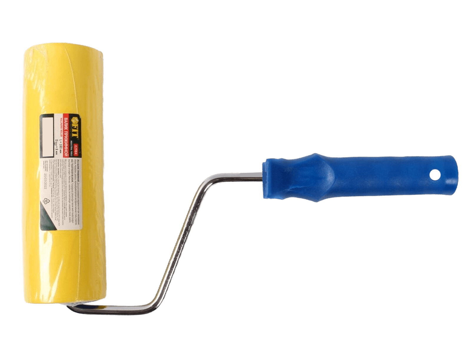 Валик прижимной для обоев 180 мм FIT (резиновый, большой диаметр, желтый, с ручкой)