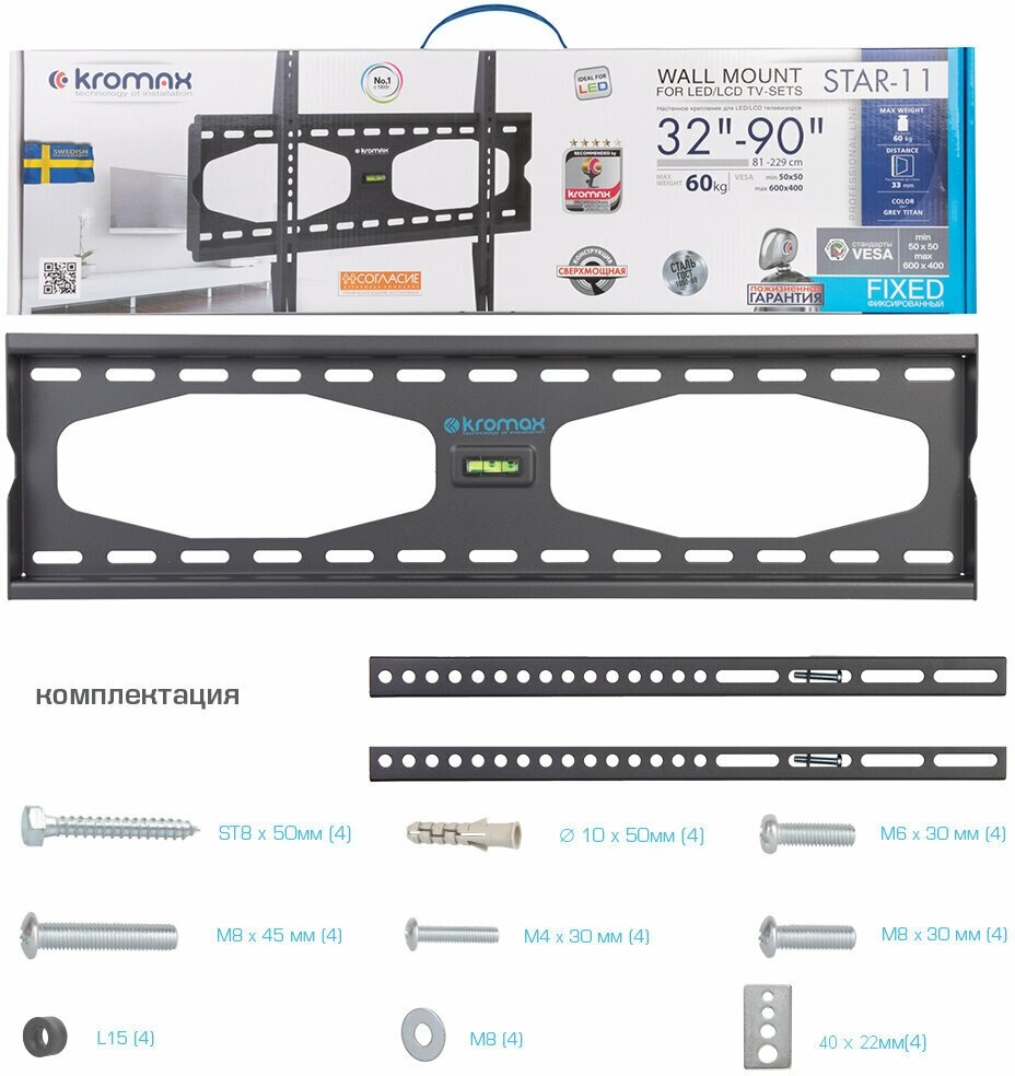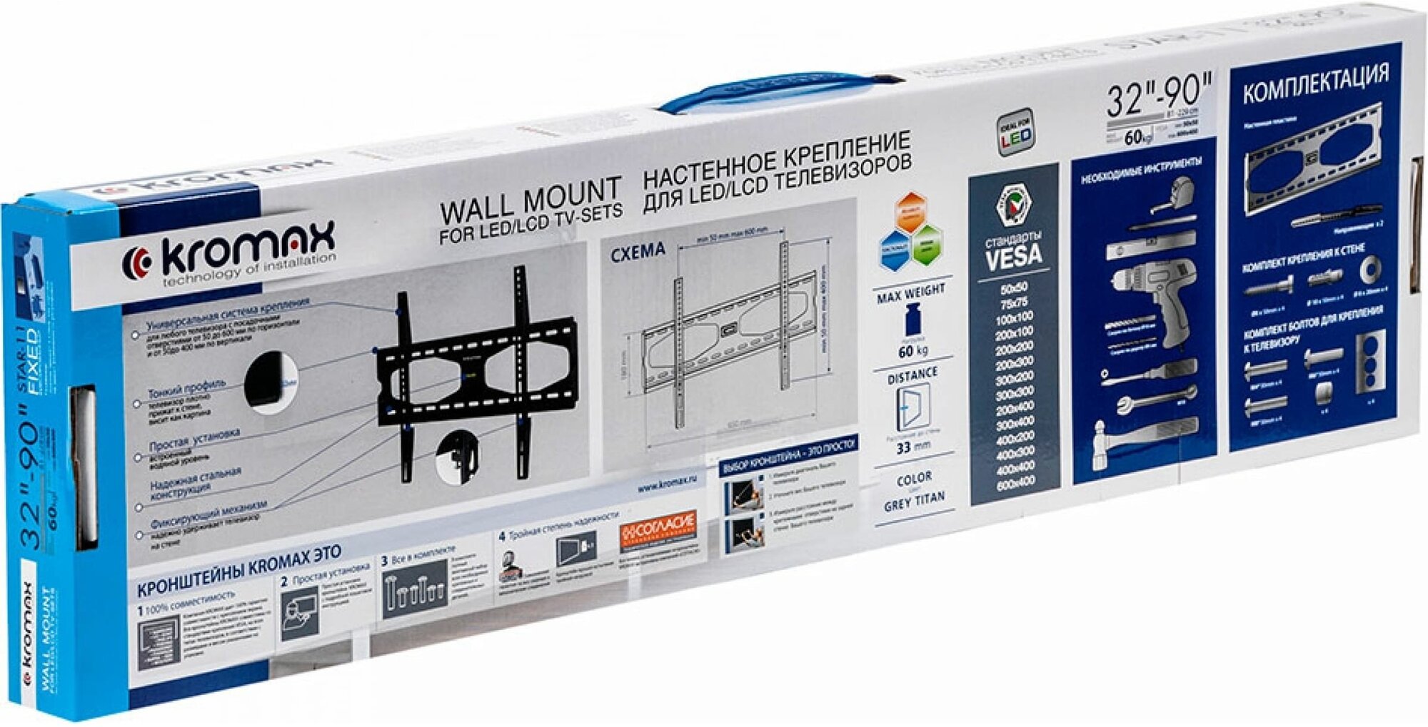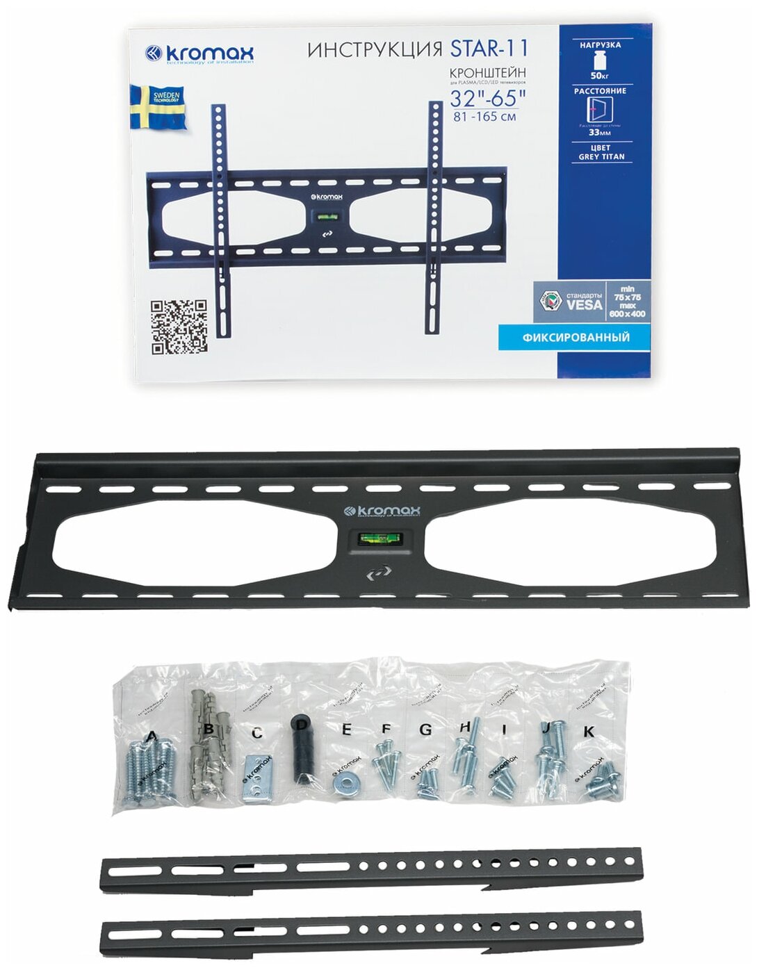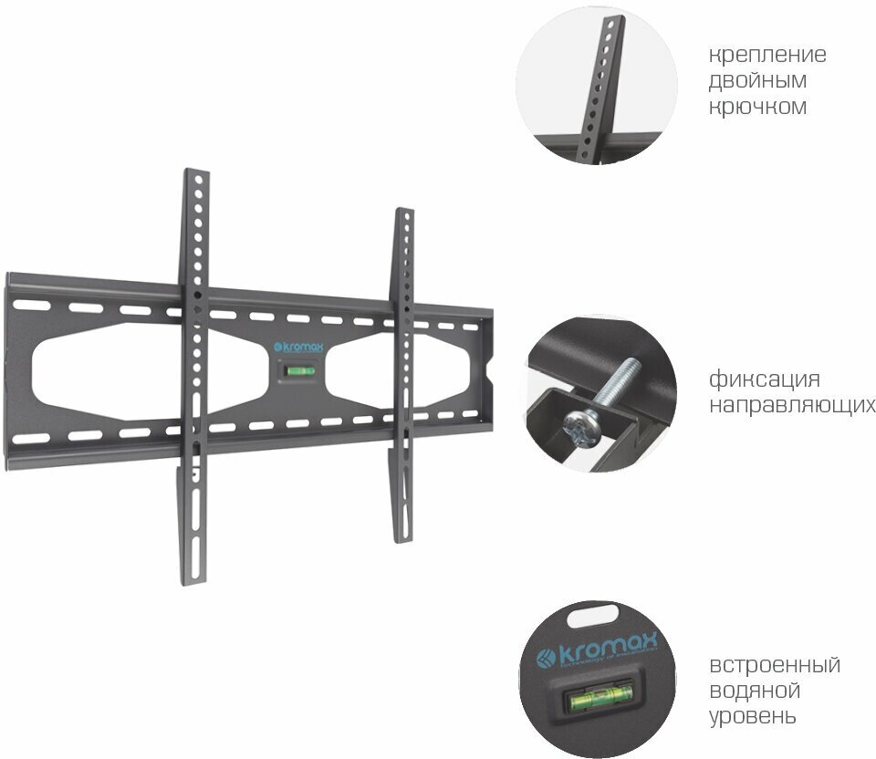 Кронштейн Kromax серый 32-65" от стены 33мм VESA 600х400мм до 50кг