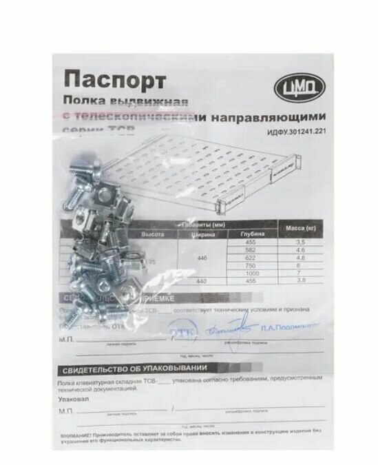 | Прочие особенности и свойства | Полки серии СВ предназначены для размещения нестандартного оборудования. Имеют четыре точки фиксации к вертикальным направляющим шкафов и открытых стоек. Для свободного прохождения охлаждающего воздуха полки имеют развитую перфорацию. |