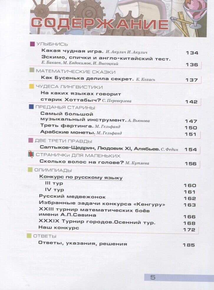 Взяла альманах для дочери. Она учится в 10 классе и участвует во всевозможных научных проектах, олимпиадах в по разным дисциплинам. Издание прекрасное: красочное оформление, увлекательное содержание, много познавательной информации и практических задач, ответы тоже есть. Однако, думаю, что этот сборник действительно для учащихся 5-8 классов. Всем увлекающимся учебой: учителям и ученикам средней школы - рекомендую!