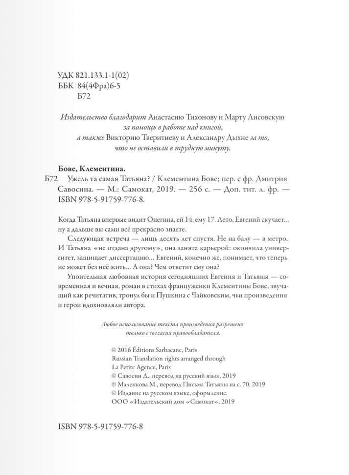 Книга: Ужель та самая Татьяна? (Савосин Дмитрий (переводчик), Бове Клементина); Самокат, 2019