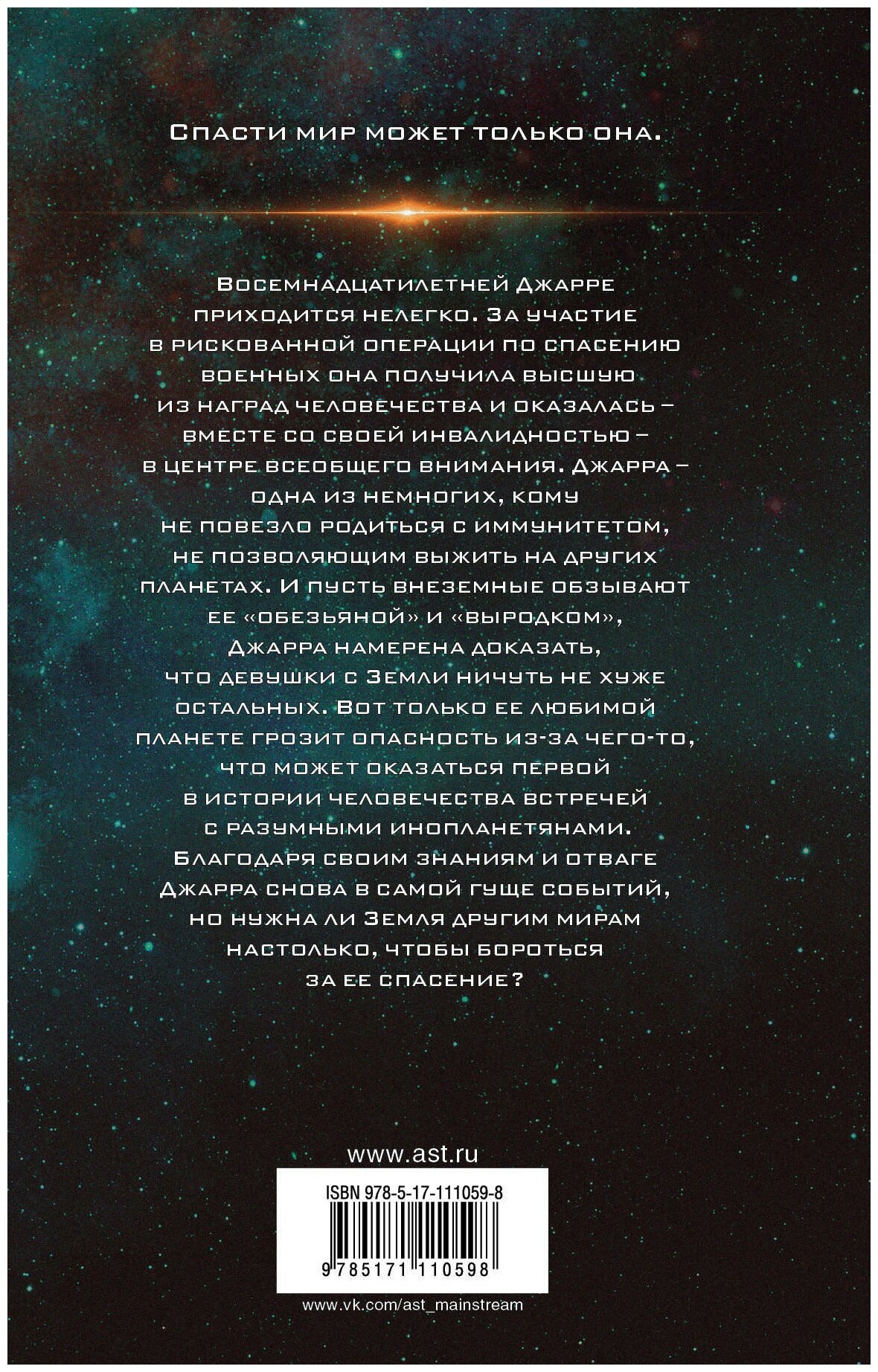 Восемнадцатилетней Джарре приходится нелегко. За участие в рискованной операции по спасению военных она получила высшую из наград человечества и оказалась - вместе со своей инвалидностью - в центре всеобщего внимания. Джарра - одна из немногих, кому не повезло родиться с иммунитетом, не позволяющим выжить на других планетах. И пусть внеземные обзывают ее "обезьяной" и "выродком", Джарра намерена доказать, что девушки с Земли ничуть не хуже остальных. Вот только ее любимой планете грозит опасность из-за чего-то, что может оказаться первой в истории человечества встречей с разумными инопланетянами. Благодаря своим знаниям и отваге Джарра снова в самой гуще событий, но нужна ли Земля другим мирам настолько, чтобы бороться за ее спасение?