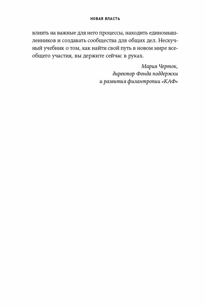 Трамп выигрывает выборы, Airbnb стоит больше, чем Hilton, а любую компанию может разрушить гневный твит обиженного клиента, который молниеносно распространяют тысячи пользователей. Объяснение всему - новая власть. На протяжении почти всей истории человечества власть была у тех, кто "наверху": правителей, церковных иерархов, знати или крупных корпораций. Теперь люди могут объединяться и самоорганизовываться онлайн, без оглядки на географические границы. И с беспрецедентной скоростью влиять на очень многие события. Авторы рассказывают, как новая власть меняет политику, бизнес и общество - и как понимание этих процессов может изменить вашу жизнь.