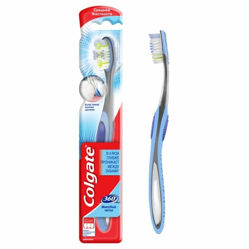 - COLGATE 360 Межзубная Чистка многофункциональная зубная щетка, средней жесткости