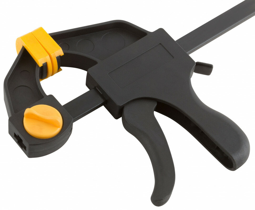 Струбцина нейлоновая пистолетная Fit , 450х645х70 мм предназначена для фиксации деталей из дерева и металла при проведении столярных и слесарных работ.Преимущества Быстрозажимной рычажный механизм упрощает использование инструмента Может использоваться как распорка при перестановке губок Корпус струбцины выполнен из качественного нейлона, армированного фибергласом, направляющая — из инструментальной стали, губки — из пластика
