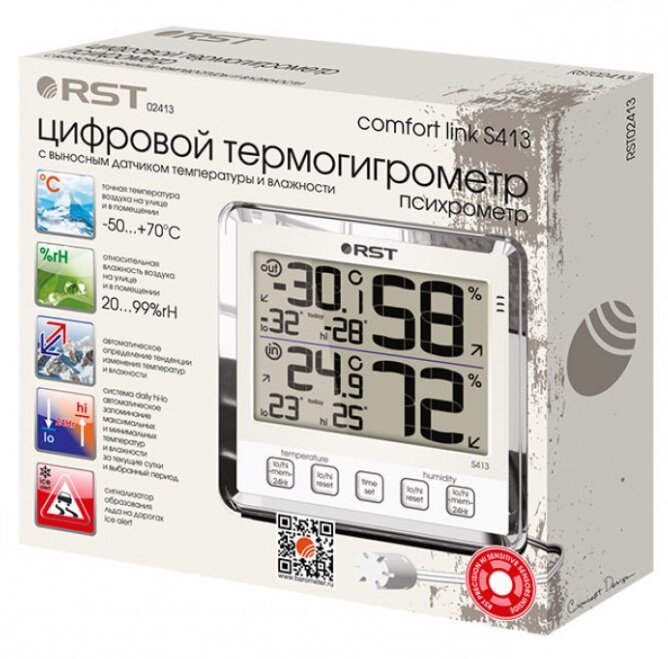 Уникальная модернизированная версия бестселлеров RST теперь с увеличенным, более контрастным дисплеем и хромированной вставкой. Примененная инновационная технология позволяет получить точную информацию о малейших изменениях микроклимата в помещении и на улице.
