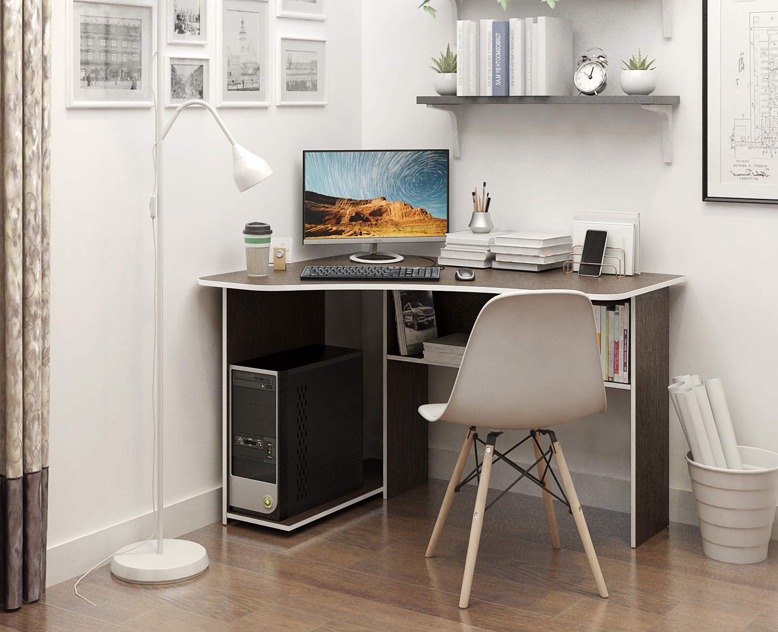 Стол компьютерный МАСТЕР Триан-1 левый угол угловой ЛДСП белый МСТ-УСТ-01-БТ-16