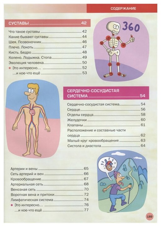 Мне эта книга напомнила плакаты на уроках биологии: текста почти нет, везде схемы, увеличенные изображения строения чего-либо с пояснениями и т.д.. Но не могу сказать, что из-за этого страдает качество издания. Кстати, название энциклопедии стопроцентно подходит, ибо она именно иллюстрированная. Но иллюстрации действительно «взрослые», поэтому книга однозначно для старших подростков. Да и в силу возраста уже будут понятные нюансы строения человеческого тела. Правда, меня немного смутили карикатурные иллюстрации – может это такой посыл тому, что энциклопедия всё-таки детская. Непонятно в общем. Но именно к содержанию у меня претензий нет: все четко и подробно описано, все схемы и строения в миниатюре очень реалистичные, хотя иллюстрации везде рисунки, а не компьютерная графика или реальные фото. Однозначный плюс энциклопедии – очень большое количество иллюстраций как бы в разрезе. Была бы у меня в детстве такая энциклопедия, я бы стопроцентно знала бы анатомию лучше. В общем, мне энциклопедия однозначно понравилась, да и ребенку в учебе будет хорошим помощником.