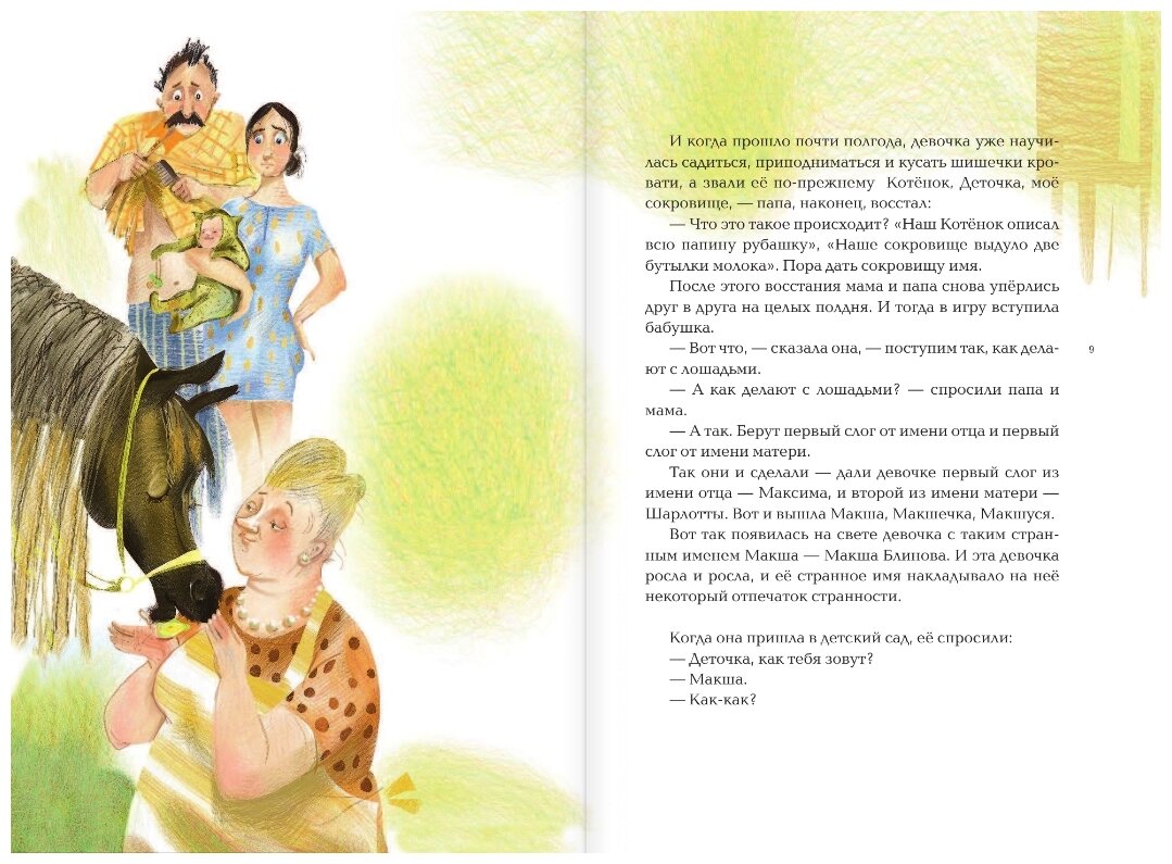 Героиня повести Эдуарда Успенского "Про девочку со странным именем" Макша - очень современный ребёнок. Она смело перечит взрослым и даже ими командует, она легко работает перед телекамерами, ищет и находит справедливость, имеет деловую жилку и дружит со всеми, кто этого заслуживает. Из таких детей получаются отличные взрослые! Рисунки к повести сделала любимая художница писателя Э.Успенского Екатерина Муратова.