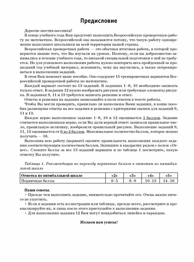 Данное пособие предназначено для учащихся 6-х классов общеобразовательных организаций. Оно позволяет в кратчайшие сроки проверить свои знания, потренироваться в выполнении заданий и тем самым успешно подготовиться к выполнению Всероссийской проверочной работы по математике по итогам обучения в 6-м классе.
