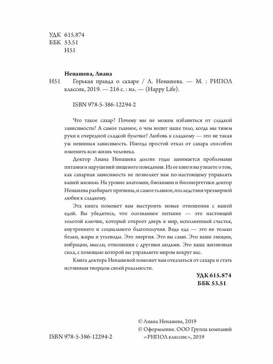 Книга: Горькая правда о сахаре (Лиана Ненашева); РИПОЛ Классик, 2019