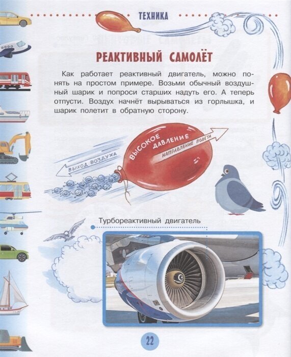 Энциклопедию "Техника для малышей" купила сыну после выпуска из детского сада. Сыну книга понравилась за многообразие картинок. А мне за то, что в ней много полезной информации для мальчиков в области техники. Рассказывается про устройство машин, самолётов, ветролётов, кораблей. Как называются детали, из которых состоит эта техника. Все детали проиллюстрированы.