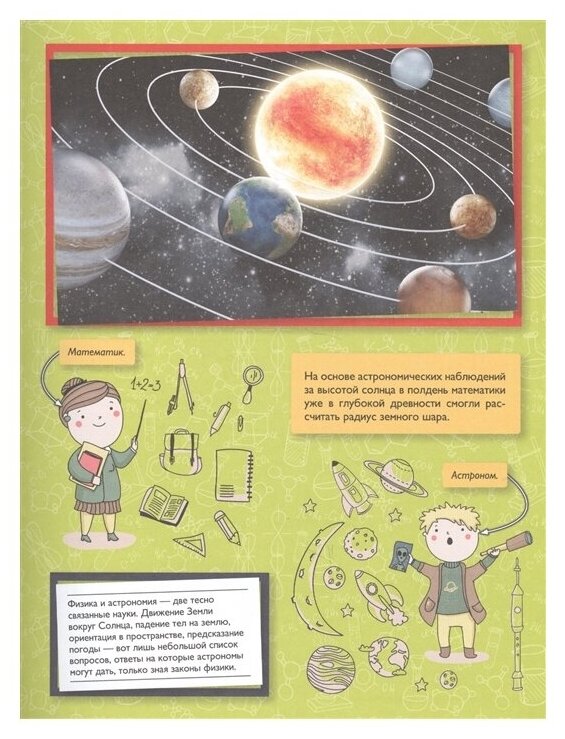 Перед тобой занимательная энциклопедия о науках. Она расскажет, что изучают астрономия, химия, физика, биология, география, как эти науки изменили мир и с какими их достижениями мы сталкиваемся в повседневной жизни. Планеты и другие небесные тела, атомы и молекулы, элементы и вещества, законы природы и простейшие механизмы, клетки, ткани, органы и организмы, литосфера, атмосфера, гидросфера - обо всем этом говорят и на уроках в школе, но энциклопедия подает информацию доступно, образно, весело, знакомит с дополнительным материалом, который пригодится, чтобы стать настоящим умником. Интересные статьи, схемы, графики, иллюстрации помогут не только быстрее и качественнее выполнять домашние задания, но и получить от чтения удовольствие.