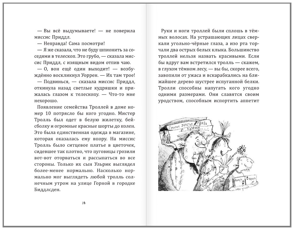 Уморительные приключения семеи?ки троллеи? от Алана Макдональда в очень удачном русском переводе. Советую на возраст от 7 лет, много школьных атрибутов, очень смешно, даже гротескно об обыденном, грустном и неприглядном среди людеи?. Все это приправлено приключениями и даже детективнои? линиеи?. Герои здесь - именно тролли: трогательные, забавные, добродушные и очень дружные. Их жизнь, речь и быт описаны так детально, занимательно, правдиво, что ненароком веришь в то, что они есть, а вот люди в этих историях, наоборот, нелепы и странны.