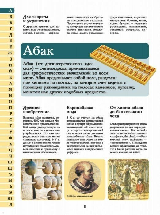 Каких только энциклопедий не написано - о технике, животных, космосе, великих людях, грандиозных исторических событиях. И много о чем еще! Но есть особый тип универсальных энциклопедий, в которых по алфавиту расставлены развернутые статьи-обзоры обо всем на свете. Данное издание является именно таким. Эта книга-словарь познакомит любознательных ребят с различными понятиями из многих областей жизни: истории, географии, биологии, механики, астрономии, архитектуры и искусства. Двигатель внутреннего сгорания, дерево, динозавры, дирижабль, Древний Рим - столько интересного можно почерпнуть из познавательных лаконичных статей, дополненных великолепными иллюстрациями и картами, и это только на букву Д! Здесь каждый материал раскладывается на дополнительные: заинтересовавшись, например, историей Древнего Египта, юный читатель прочтет о его правителях, религии, пирамидах, ремеслах.