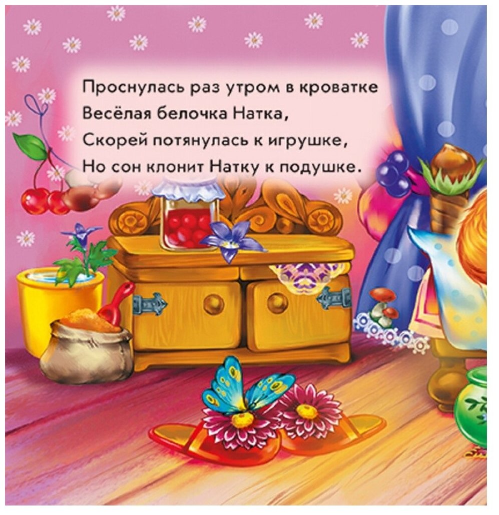 Книги из этой серии действительно нужные, отличные помощники для мамы. В этой книжке маленькая белочка идет умываться и делает это очень весело. Текст добрый, иллюстрации милые. Ребенку интересно слушать, а затем отправляться в ванну и повторять. Качество хорошее, плотные картонные листы, интересная вырубка, удобно брать книжку с собой.