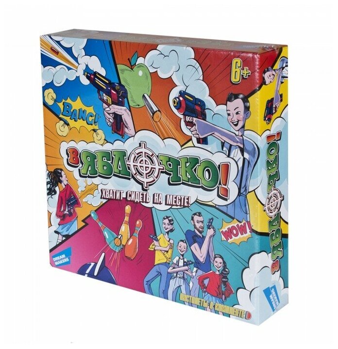Dream makers В яблочко - настольная игра для всей семьи. Игроки при помощи пистолетов пытаются попасть в одну из трех, разнесенных на разное расстояние мишеней. Но прежде чем это сделать участникам необходимо выполнить определенное задание.