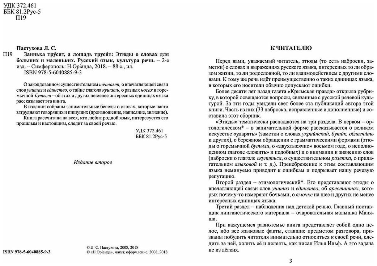 Заинька трусит а лошадь трусит. Этюды о словах для больших и маленьких.Русский язык и культура речи (Пастухова Лидия Сергеевна); Н.Орiанда, 2018