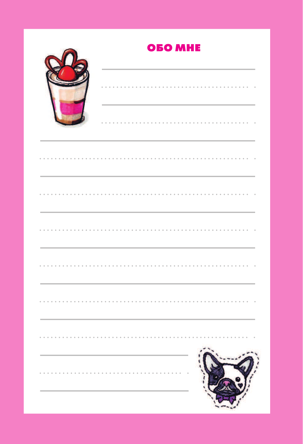 Не стоит ждать многого от этой наивной миленькой книжки. Это девчачий дневничок с анкетами и секретиками, но не более того. Изобилует глупыми рисунками и советами из женских и девичьих журналов. Подойдет девочкам-подросткам 10-14 лет для легкого чтения. Для более взрослых девушек сия книженция не представляет интереса.