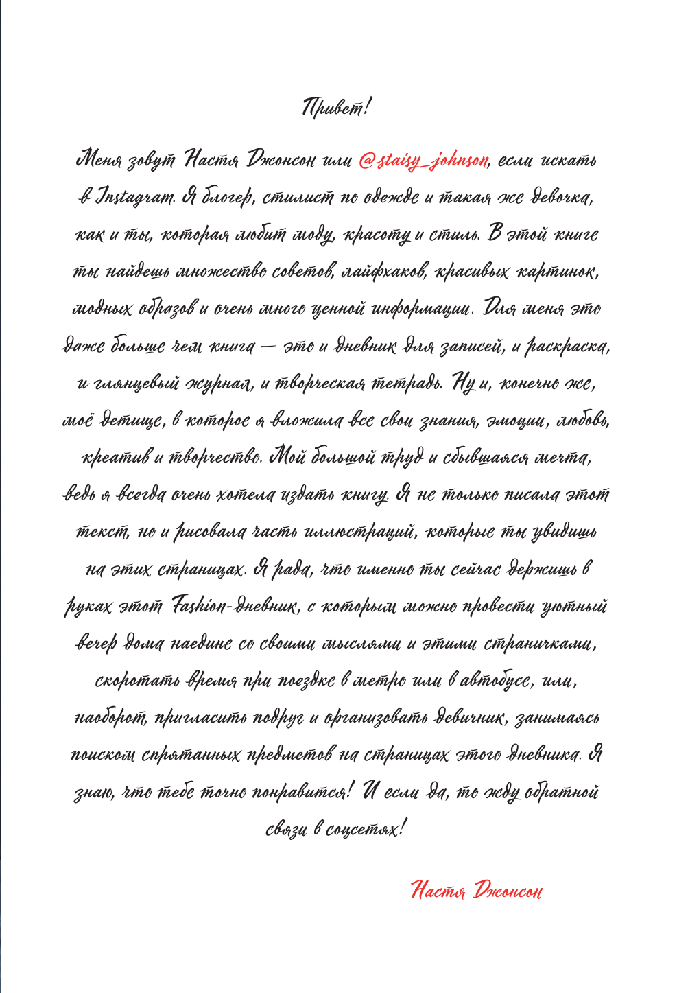 Fashion дневник от Насти Джонсон (Джонсон Настя); ООО "Издательство "Эксмо", 2019
