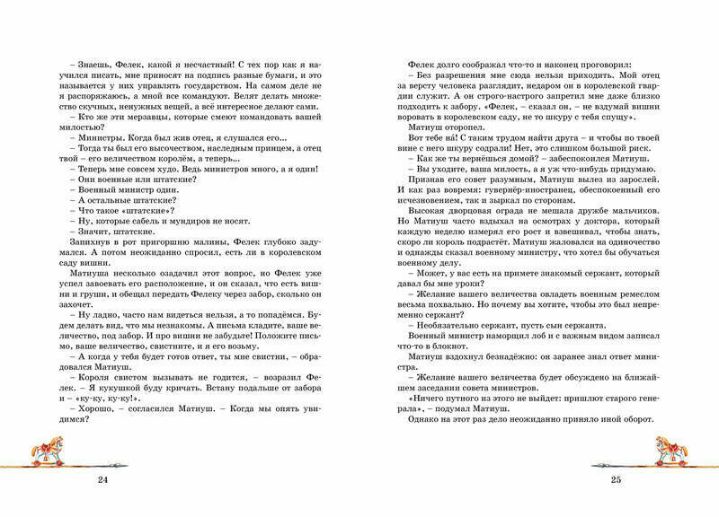 Одно из самых известных произведений писателя – повесть-сказка «Король Матиуш Первый». Это история юного Матиуша, который, рано потеряв родителей, вынужден был занять трон короля. Чувствуя ответственность перед своим народом, Матиуш, добрый и отзывчивый мальчик, всем сердцем хотел сделать жизнь людей в своём королевстве лучше. И прежде всего он думал о детях. Но сколько трудностей и разочарований ждало его на этом нелёгком, но благородном пути!
