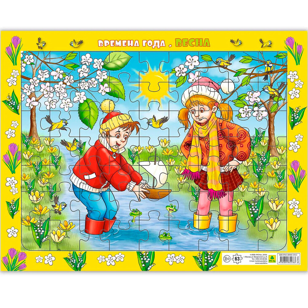 Пазл на подложке РУЗ Ко Времена года. Весна Времена года.Весна. Детский пазл на подложке