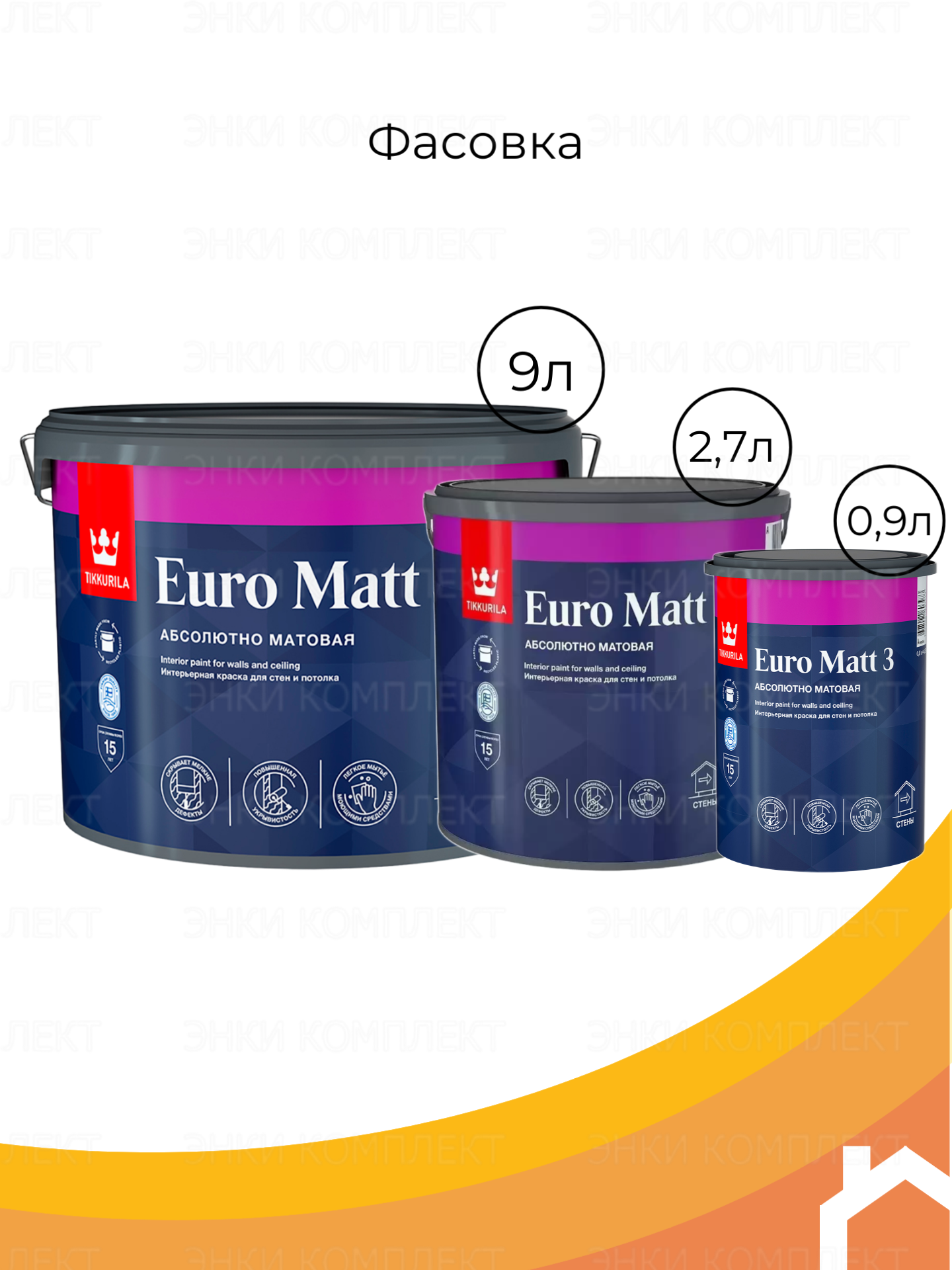 Краска интерьерная Euro Matt-3 (Евро-3) TIKKURILA 27л бесцветный (база С) Тиккурила ойл