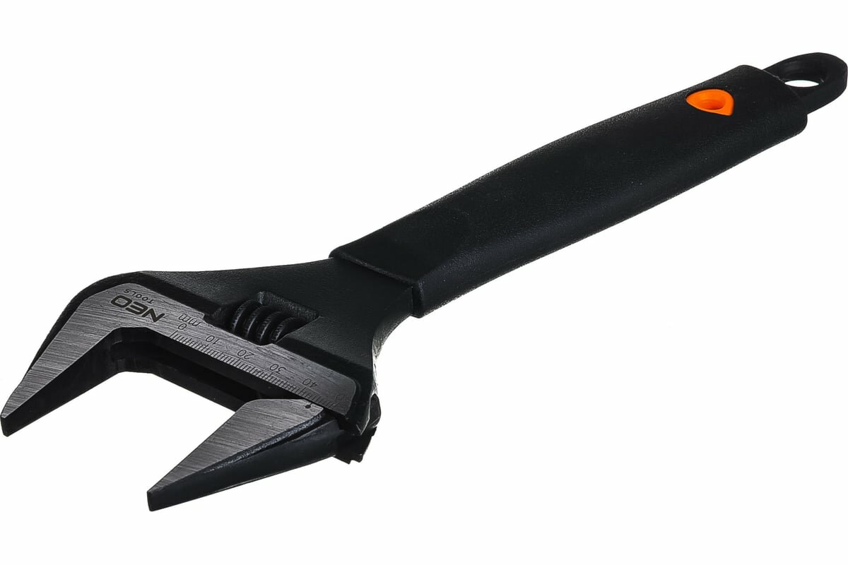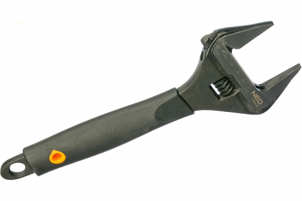 Ключ разводной NEO кованый из прочной хромованадиевой стали. Отличается очень широким рабочим диапазоном губок. Просвет губок на 40% больше, чем у стандартных ключей. Расширенная и утонченная головка позволяет работать в труднодоступных местах. Эргономичная рукоятка с TPR-покрытием, стойким к воздействию масел и смазок. Качество инструмента подтверждено сертификатом TUV и 25-летней гарантией производителя. Бренд NEO оправдывает ожидания профессионалов.