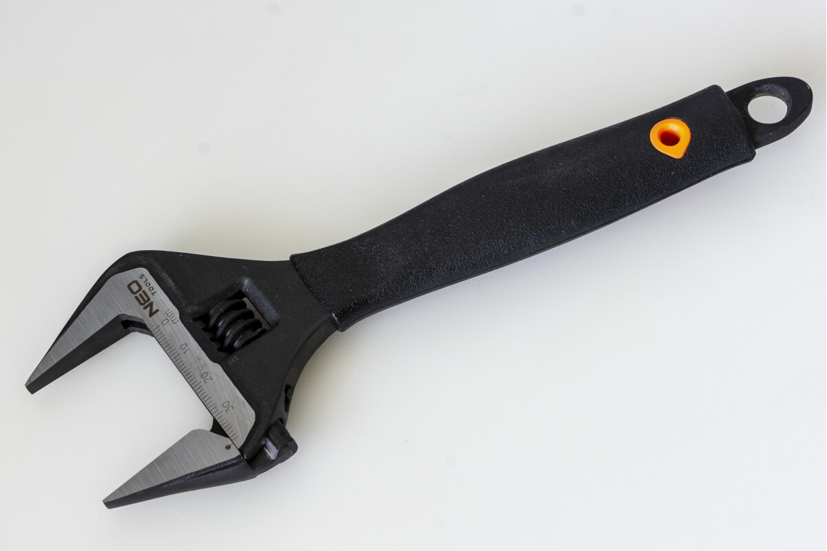 Ключ разводной NEO кованый из прочной хромованадиевой стали. Отличается очень широким рабочим диапазоном губок. Просвет губок на 40% больше, чем у стандартных ключей. Расширенная и утонченная головка позволяет работать в труднодоступных местах. Эргономичная рукоятка с TPR-покрытием, стойким к воздействию масел и смазок. Качество инструмента подтверждено сертификатом TUV и 25-летней гарантией производителя. Бренд NEO оправдывает ожидания профессионалов.