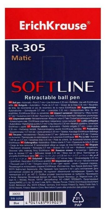 На сегодняшний день товар «Ручка шариковая автоматическая Erich Krause R-305 (39055)» можно купить с кешбеком в 1 магазине: Яндекс.Маркет