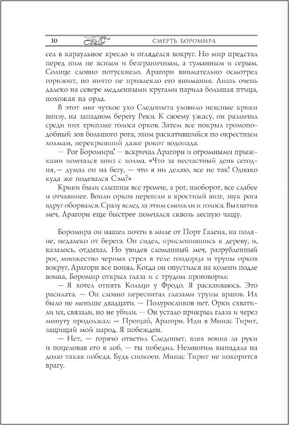 Но большинство рисунков действительно хороши, а форзацы во всей серии просто прекрасны. Как и сам дополненный перевод Гри-Гру (Сумникса, Брыль и Колоброда прощаю) и стихи Гриншпуна. С его переводом песни на смерть Боромира вообще мало что может сравниться и она (песня) легко спорит с оригиналом Толкина, а это дорогого стоит.