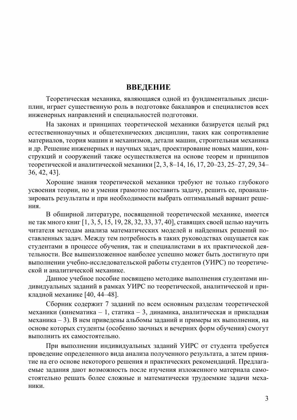Данное учебное пособие посвящено методике выполнения студентами индивидуальных заданий в рамках УИРС по теоретической, аналитической и прикладной механике. Сборник содержит 7 заданий учебно-исследовательской работы по всем основным разделам теоретической, аналитической и прикладной механики (кинематика - 1, статика - 3, динамика, аналитическая и прикладная механика - 3). Приведены альбомы заданий и примеры их выполнения, на основе которых студенты (особенно заочных и вечерних форм обучения) смогут выполнить их самостоятельно. При выполнении индивидуальных заданий УИРС от студента требуется проведение определенного вида анализа полученного результата, принятие на его основе решения и практических рекомендаций.