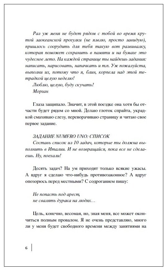 Пиппа летит на лето в Италию, да не просто так, а учиться. И все-таки у нее есть свой собственный список дел, например: искупаться в Средиземном море, не попасть в полицию, ну и, конечно, познакомиться с итальянским парнем. Но что если с последним пунктом все будет даже слишком хорошо, и Пиппе придется совершить нелегкий выбор?