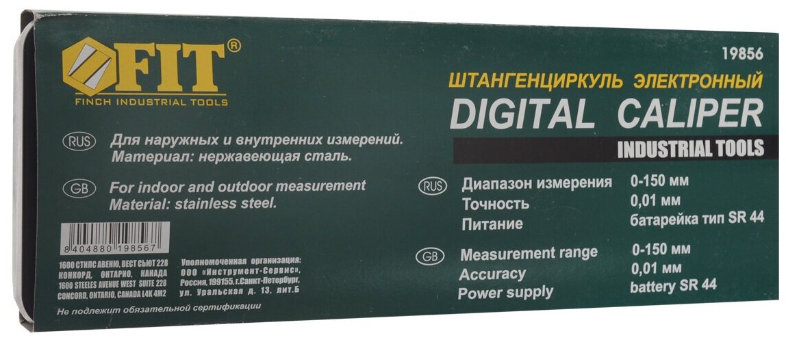 Штангенциркуль металлический нержавеющий 150 мм/0.01 мм FIT (с электронным отсчетом)