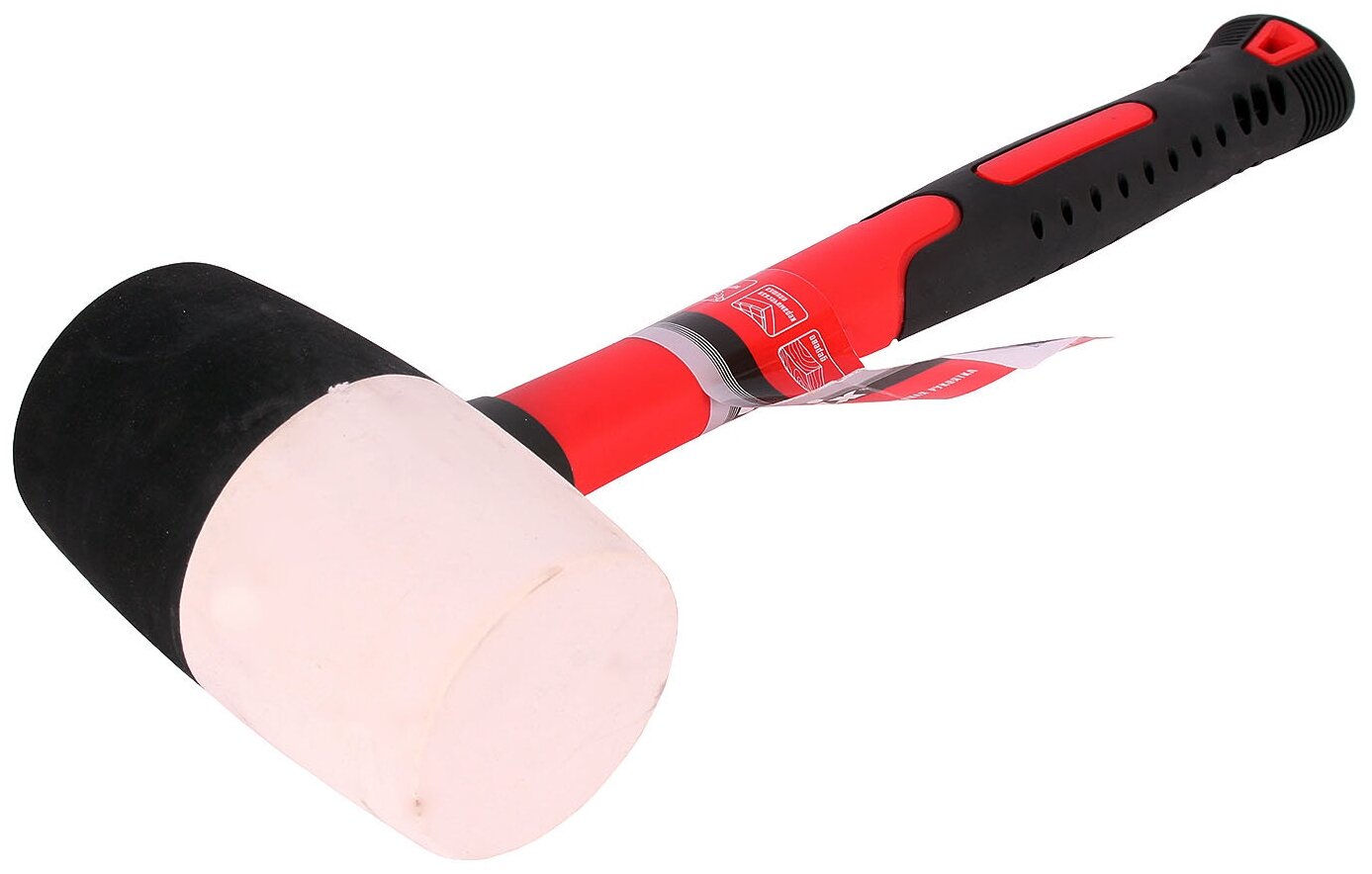 – Имеет головку с бойками из черной и белой, не оставляющей следов на светлой поверхности, резины.
