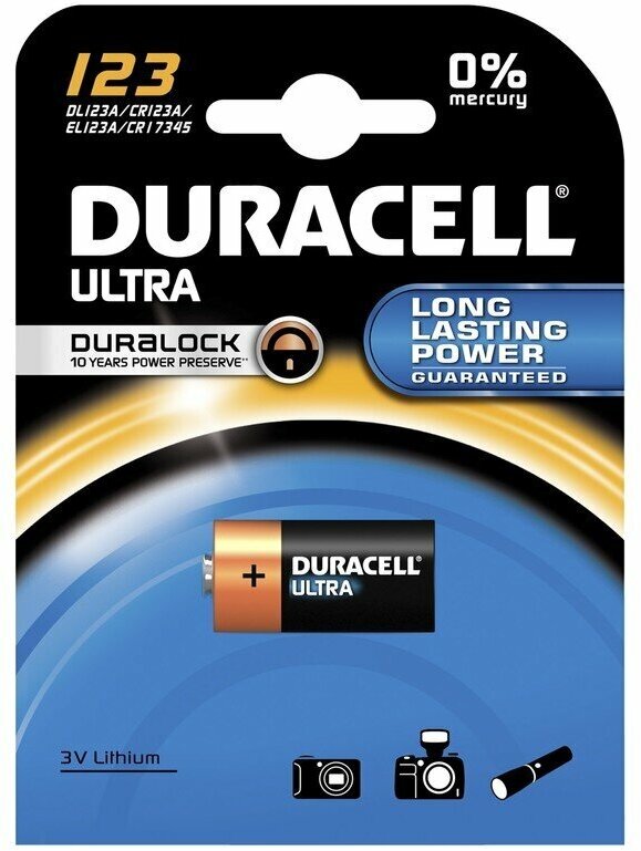 При создании литиевых фотобатарей Duracell Ultra 123 используется литий высокой степени очистки, что позволяет обеспечить надежный и долговечный заряд для Вашей фотоаппаратуры. При хранении батареек технология Duralock Power Preserve гарантирует сохранение заряда до 10 лет, так что Вы можете быть уверены, что эти литиевые фотобатарейки будут наготове, когда Вам понадобится энергия.