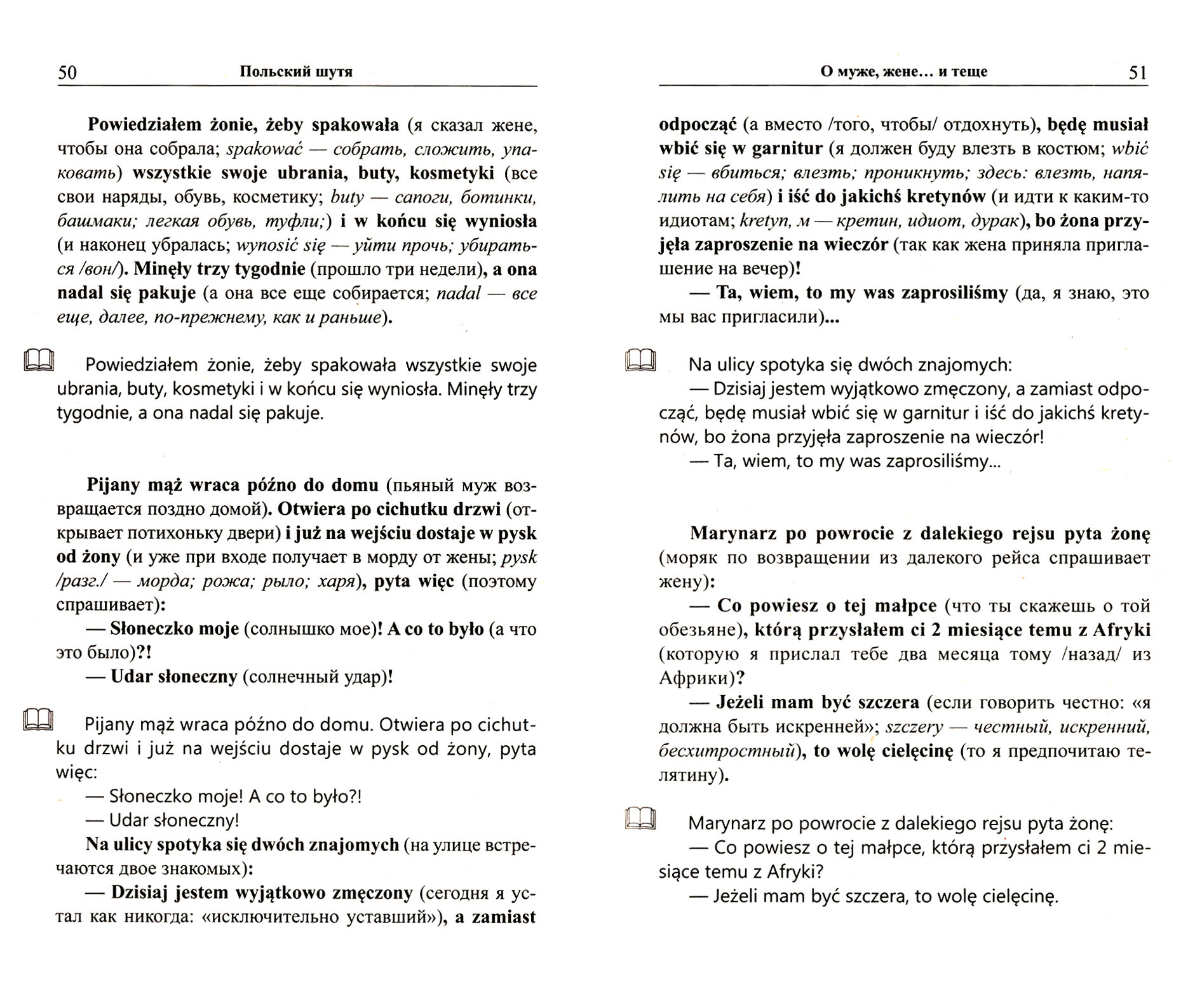 Польские анекдоты и шутки, составившие настоящий сборник, адаптированы по методу Ильи Франка: снабжены до-словным переводом на русский язык и необходимым лексико-грамматическим комментарием.